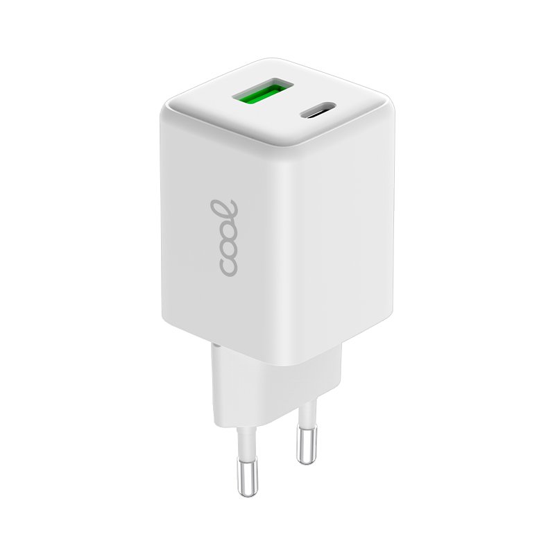 Adaptador Tipo-C con 45W de Potencia, Ultra Fast Charger, con 1 puerto Tipo - C y un puerto USB.