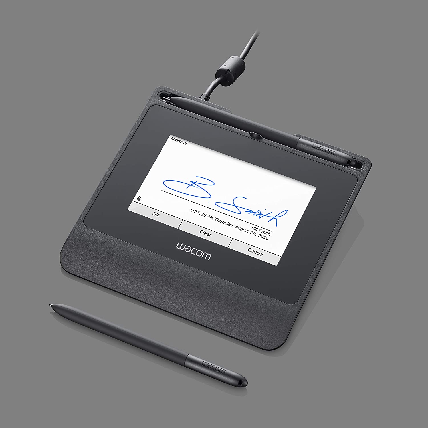 - Lápiz patentado sin cable y sin pilas con 1024 niveles de sensibilidad a la presión para capturar con precisión cada firma única, incluidos los datos biométricos