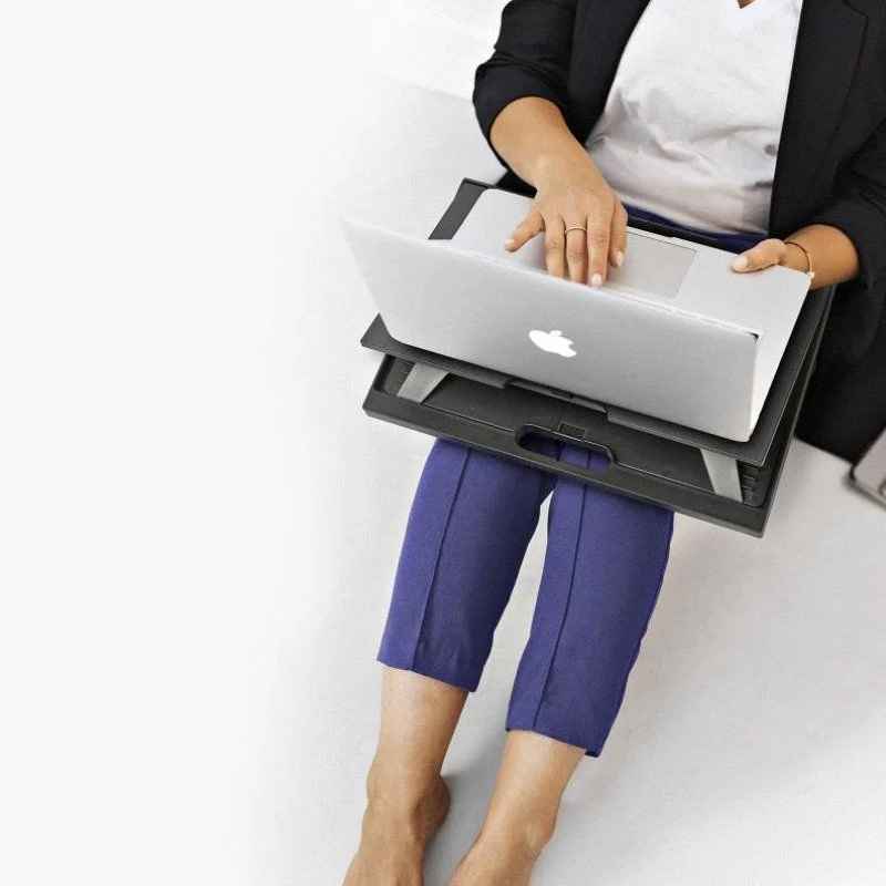Esta práctica plataforma ajustable con base acolchada te permite apoyar el laptop o tablet sobre las piernas y también trabajar, dibujar, leer, escribir, etc. en una postura cómoda.