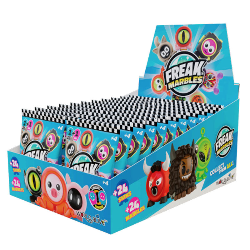 La versatilidad de Freak Marbles permite varias formas de jugar. Disfruta de emocionantes carreras de canicas, participa en batallas con amigos o intercambia skins de Canicas Freak para crear tus propias combinaciones. ¡Las posibilidades son infinitas! Y aquí viene lo mejor: Freak Marbles se vende en packs sorpresa, añadiendo un elemento de anticipación a tu colección. Cada paquete contiene una skin y una canica, lo que garantiza una experiencia emocionante al abrir la caja. Da rienda suelta a tu imaginación con Freak Marbles y embárcate en una aventura de coleccionismo de canicas sin igual. Aptas para todas las edades a partir de 4 años.