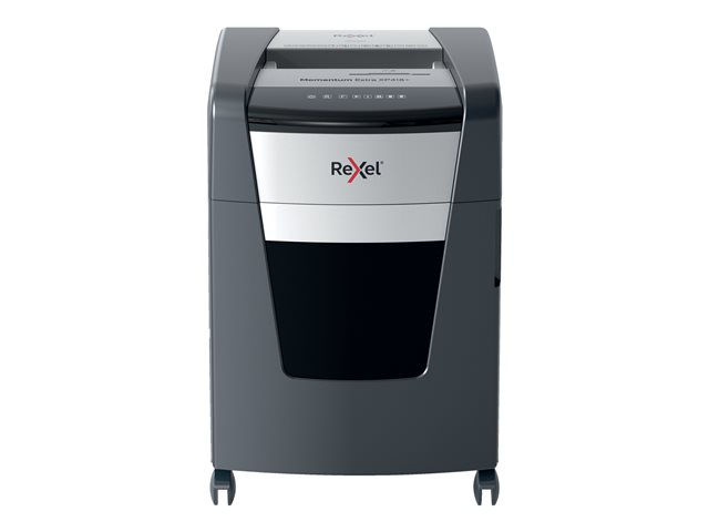 Las destructoras de papel sin atascos Rexel Momentum Extra son ideales para destruir documentos confidenciales en la oficina. La destructora XP418+ tritura hasta 18 hojas de papel A4 (80 g/m²) de una sola vez a través de la ranura de alimentación manual en trozos de corte transversal P-4 (4x35 mm).