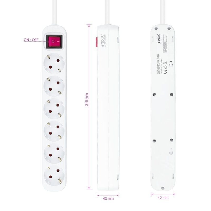 - 1 x Regleta de enchufes de 6 tomas con interruptor, 1.4 m blanca