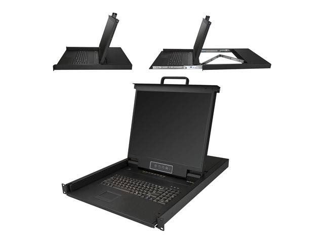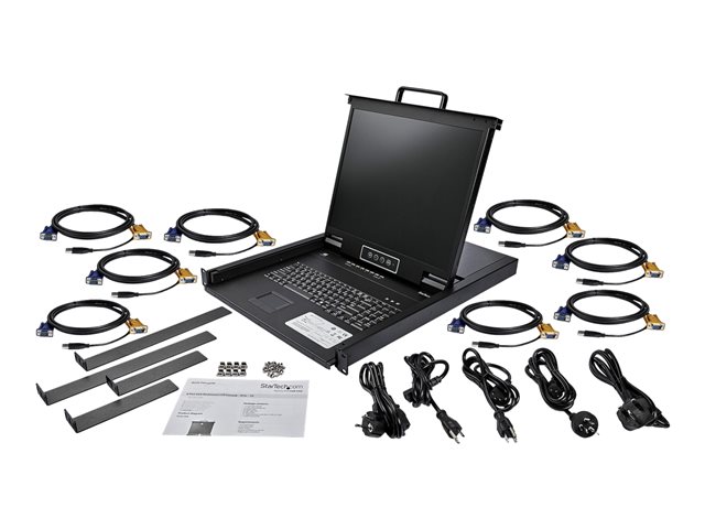 Esta consola KVM para montaje en rack ofrece control total de teclado, monitor y mouse para 8 computadoras. La consola se instala en un espacio de rack de 1U, solución eficiente en cuanto a espacio para el control total de la consola.