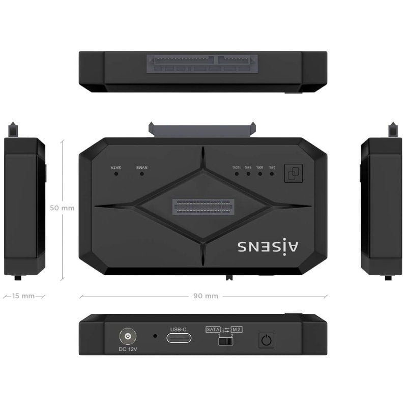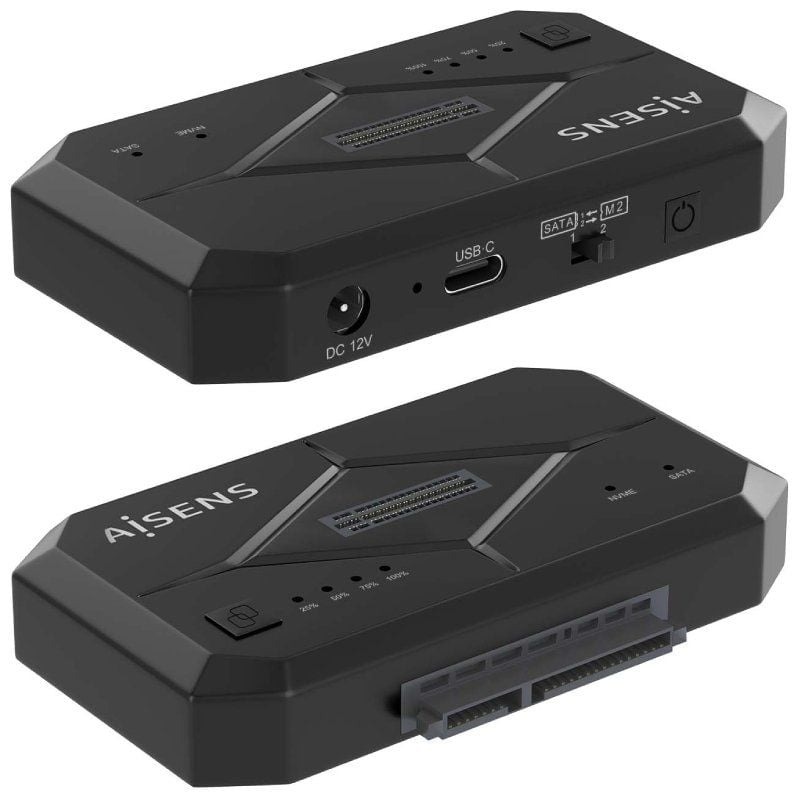 AISENS - ESTACION DE DOCKING ASDS-M2SATA04B SATA 2.5/3.5, M.2 NVMe A USB 3.0/3.1 GEN1, CLONE, NEGRO